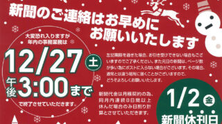 休刊日 2025年12月15日(月)は新聞休刊日となります。